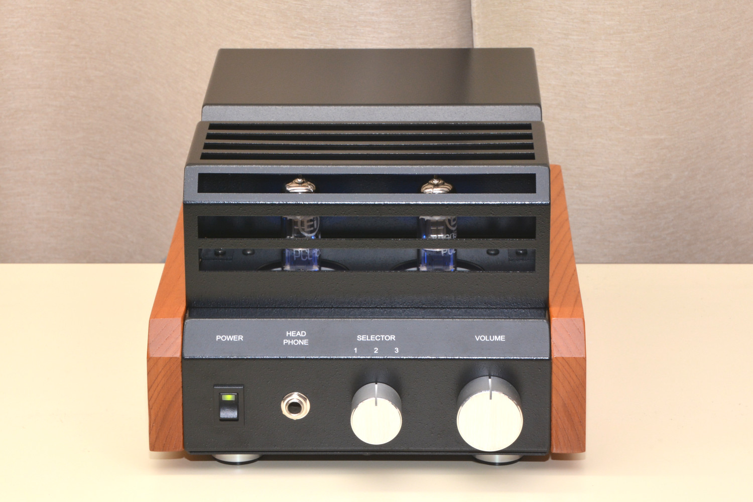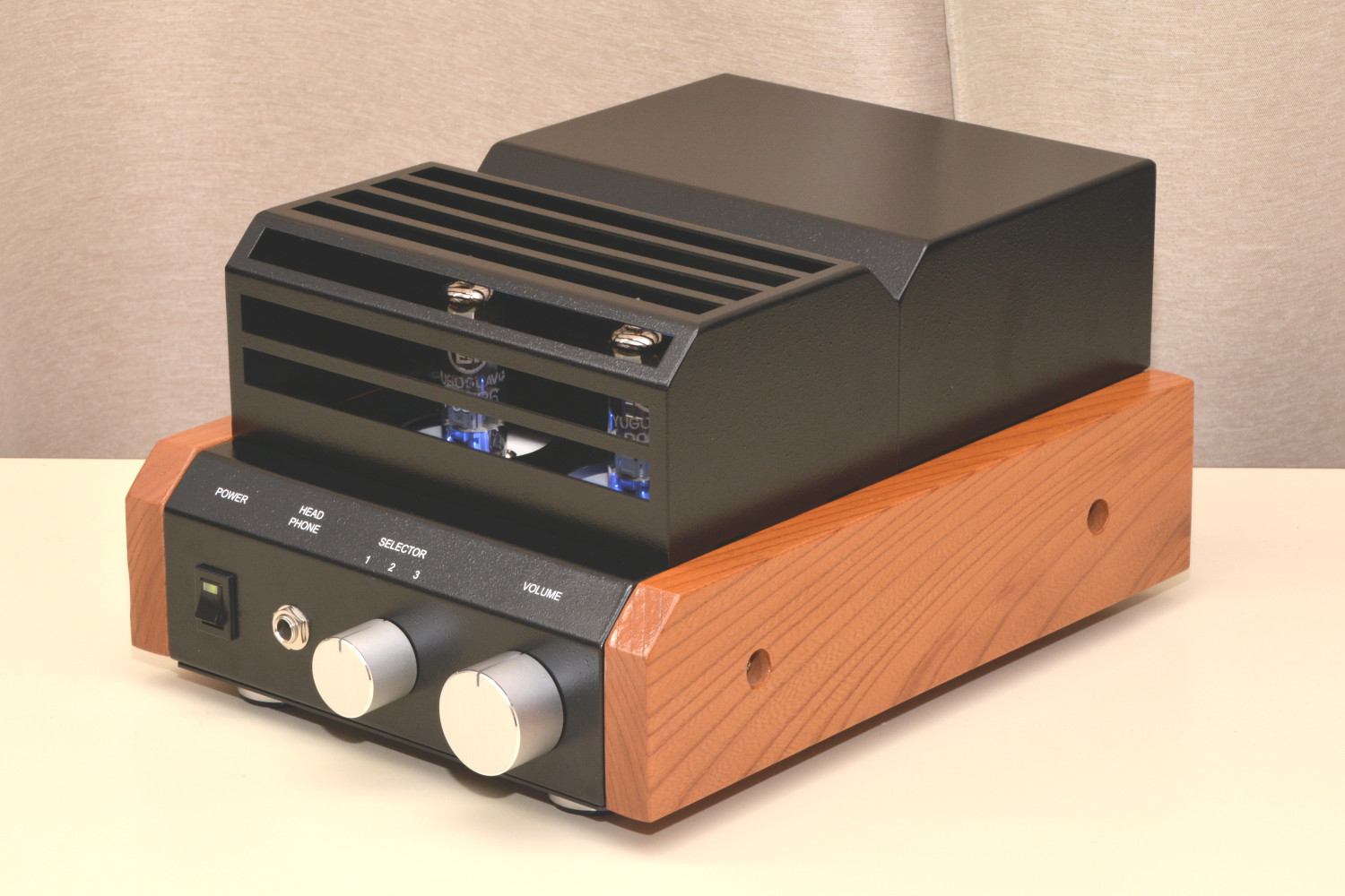 本品は音の工房でSK-100を開発する際、試作用に製作したボディーが一式残っていましたのでそのボディーを利用して真空管アンプを完成させました。