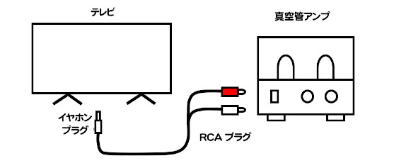 簡易的にテレビの音を真空管アンプで聴くのであれば、テレビのイヤホーン端子からRCA変換ケーブルで真空管アンプにつなげば一応聴くことは出来ます。