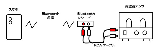 そして、スマホとレシーバー間をBluetoothで無線接続をすることでスマホの音楽を真空管アンプで聴く事が出来るようになります。