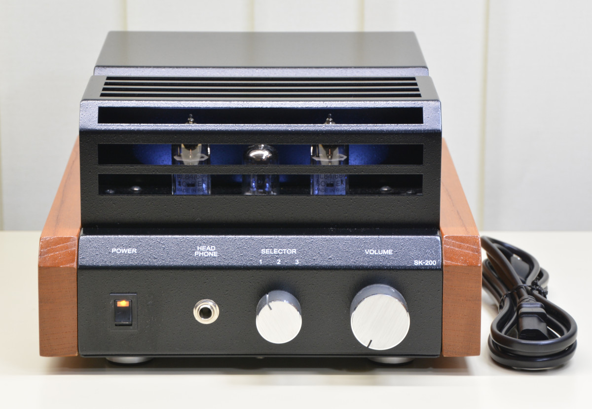 真空管アンプ「SK-100-HB」との違いは3系統入力とセレクタースイッチが無く1系統のみの入力です。