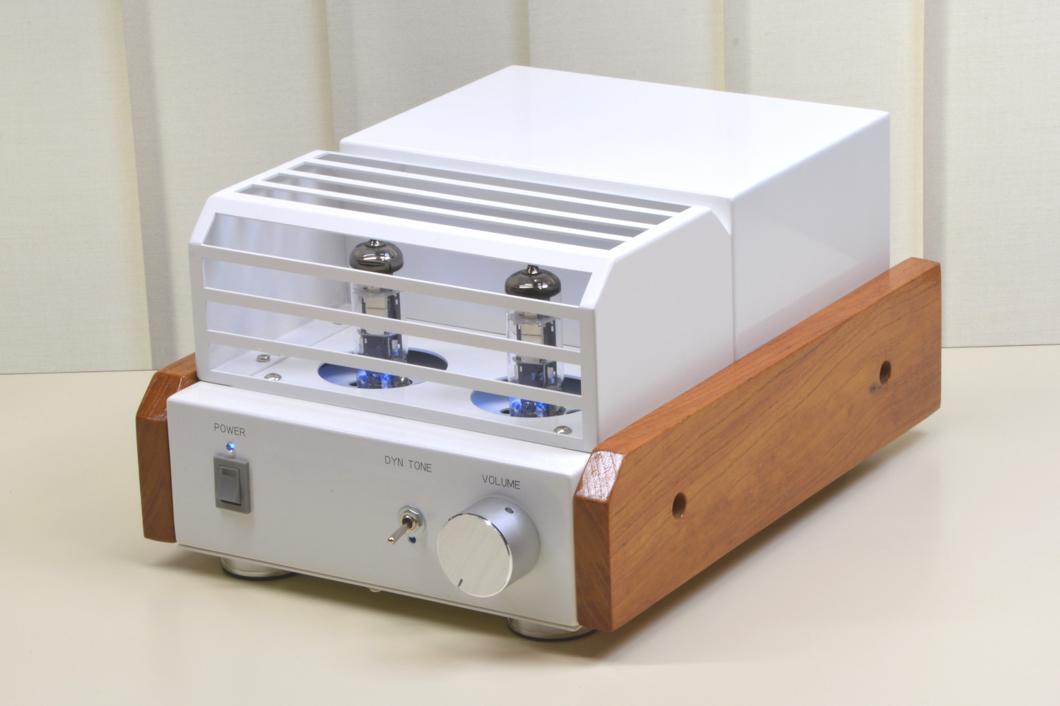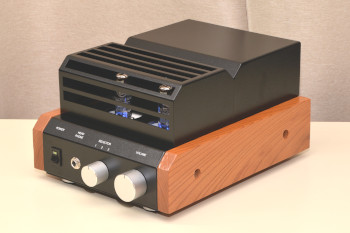 本品は音の工房で4月まで販売していた真空管アンプキットの「SK-60KT」を正式に製作・調整したものに、「真空管保護カバー」と「サイドウッド」を付けたものです。
