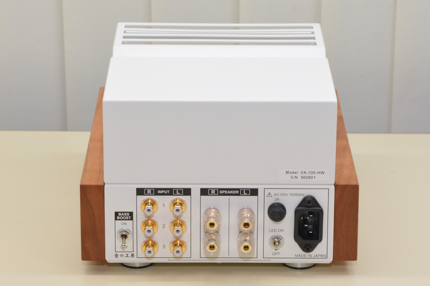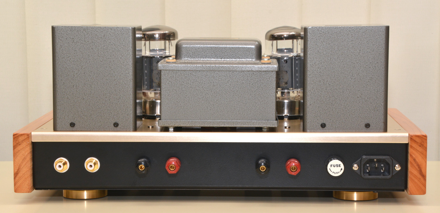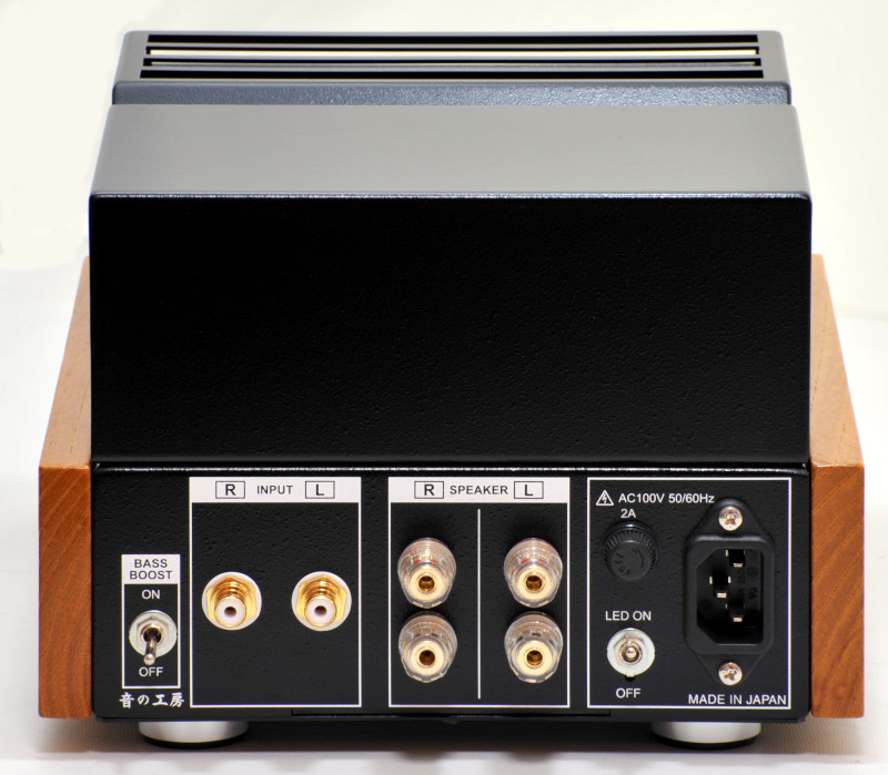 本品は音の工房で販売している真空管アンプキットの「SK-60KT」を音の工房が正式に製作・調整したものに、真空管保護カバーとサイドウッドを付けたものです。真空管アンプ「SK-100-HW」の3系統入力とセレクタースイッチが無い以外は回路も使用部品も同じ内容の製品です。