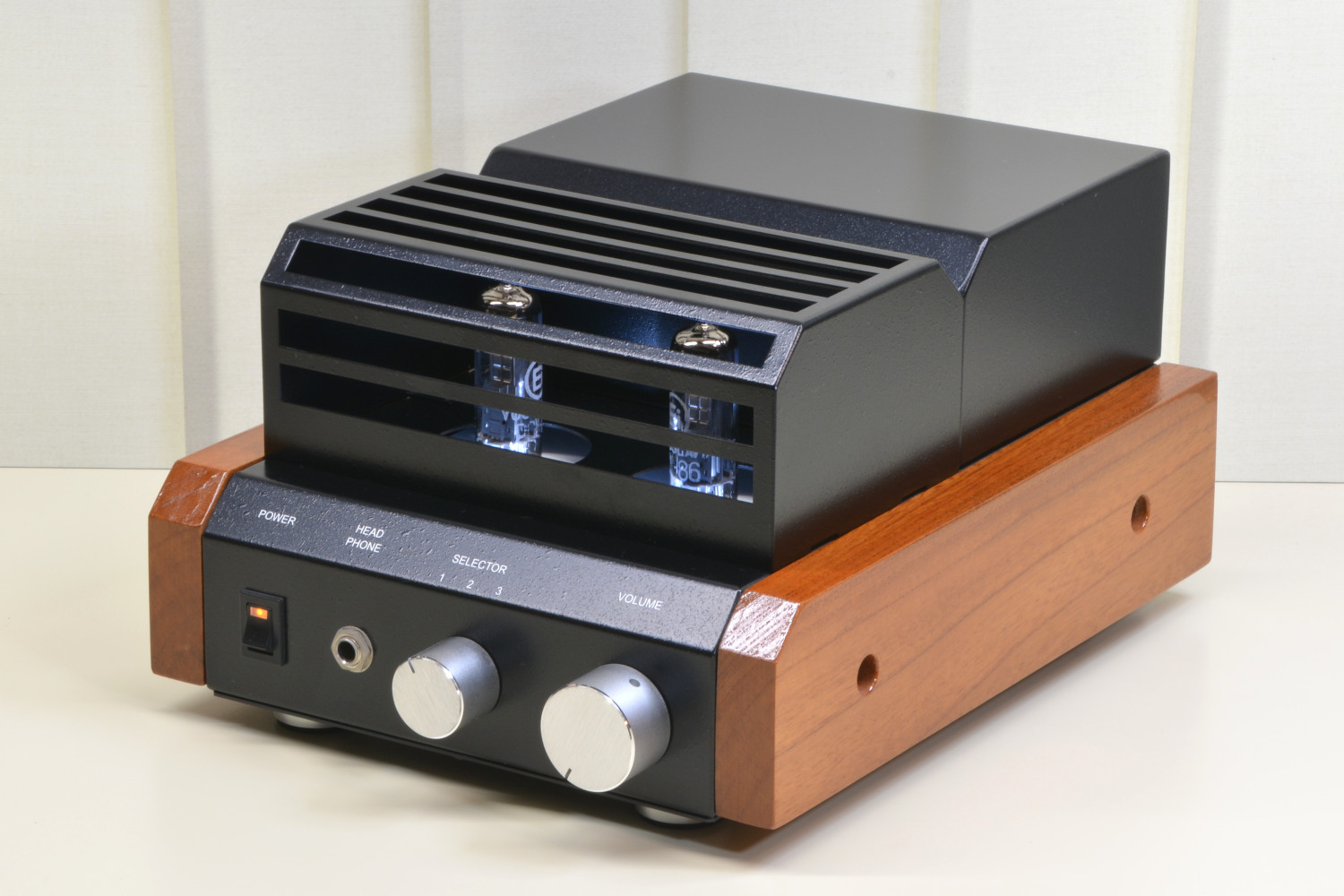 本品は音の工房でSK-100を開発する際、試作用に製作したボディーが一式残っていましたのでそのボディーを利用して真空管アンプを完成させました。