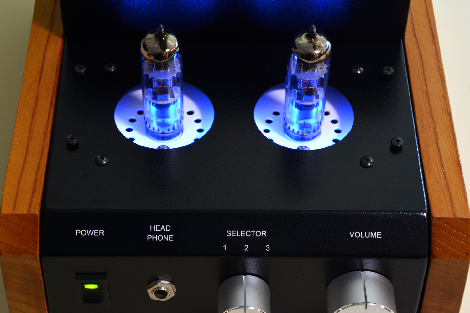 青色LED照明のオプション付きです。真空管を間接照明し幻想的な雰囲気を出しています。