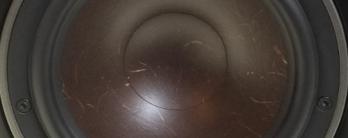 ウーハーの拡大写真でコーン紙部分の細かな筋が見えるのがウッド(木材繊維)でウッドファイバーコーンと言われるものです。