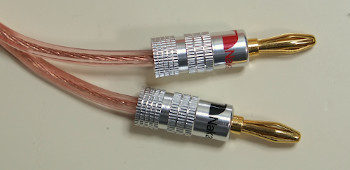音の工房が製作した金メッキバナナプラグ付のスピーカーケーブルも一緒に付属します。